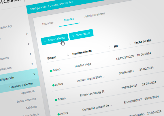 ACTIUM Connect és una eina 100% web, integrable amb els teus sistemes actuals (CRM, ERP, web…) per digitalitzar i connectar amb totes les teves entitats col·laboradores, ja siguin clients, proveïdors, empleats o alumnes.